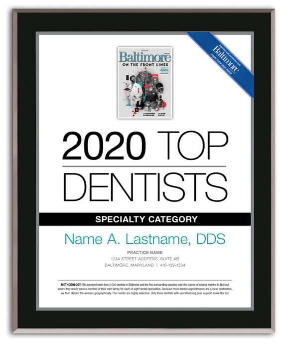 Congratulations on being named one of Baltimore magazine's Top Dentists for 2020!